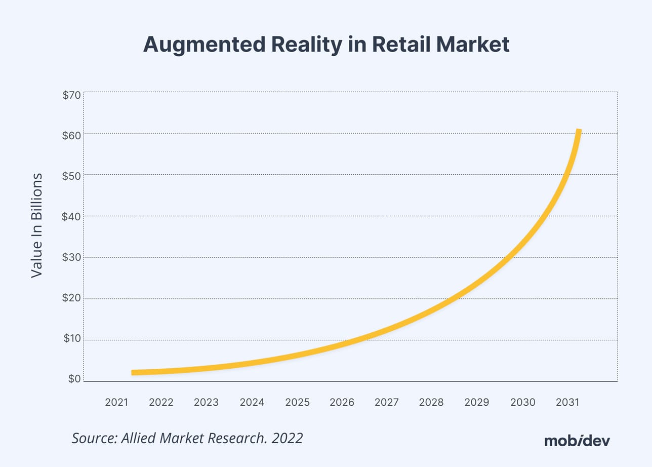 Augmented reality shopping hasn’t achieved anything new and groundbreaking this year. Instead, AR is solidifying its place as a reliable engagement method and tool for shoppers. Allied Market Research projects AR in retail will reach a market size of $61.3 billion by 2031.