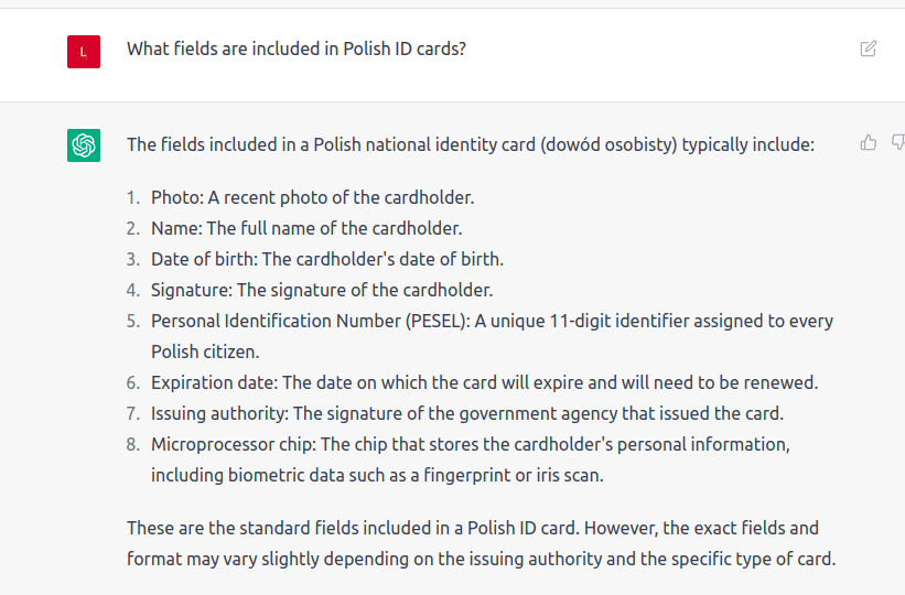 Since ID cards have their own format and different fields in each country, the task of recognizing ID cards can be very resource intensive. With GPT models, we can reduce the time needed for extracting textual data from the images, since ChatGPT can take some part of a pipeline on its own.