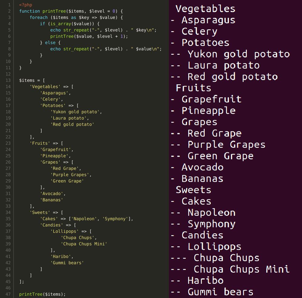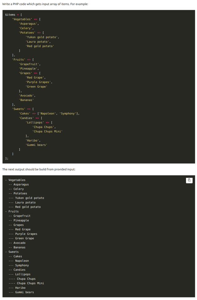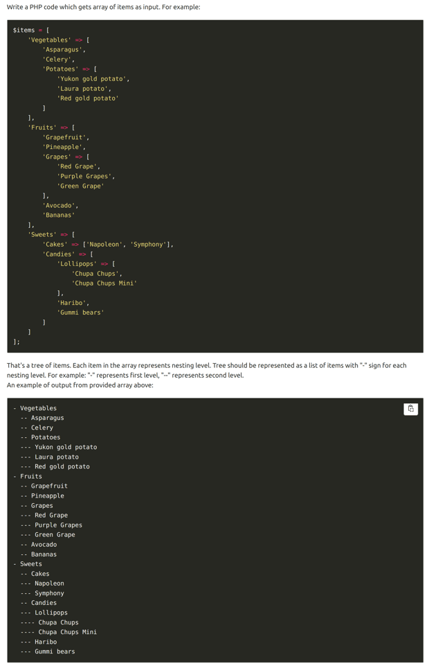 In the first attempt of this example, I wanted ChatGPT to generate the tree of items based on the provided example. However, the output turned out to be a garbage code, and I figured out that I didn’t specify that it’s a tree in the prompt. So at the second attempt I’ve added an explanation of what I need as the output.