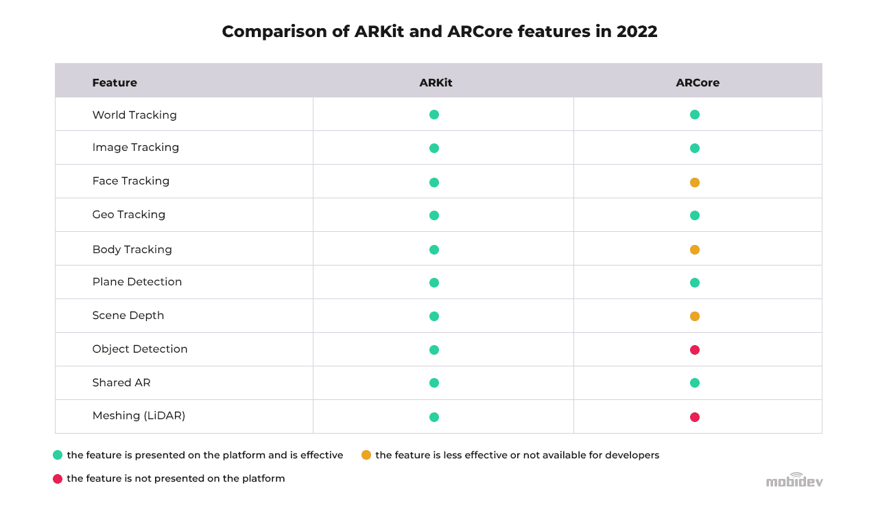 If you are only targeting iOS or if you are specifically looking to utilize the full power of Apple devices for AR experiences, ARKit is the way to go. Also, if you are going to create two native apps for iOS and Android, we recommend starting with iOS development because it provides more convenient tools for developers than Android, which means a cost-effective option for checking the feasibility of your idea. Also, it covers more potential users.