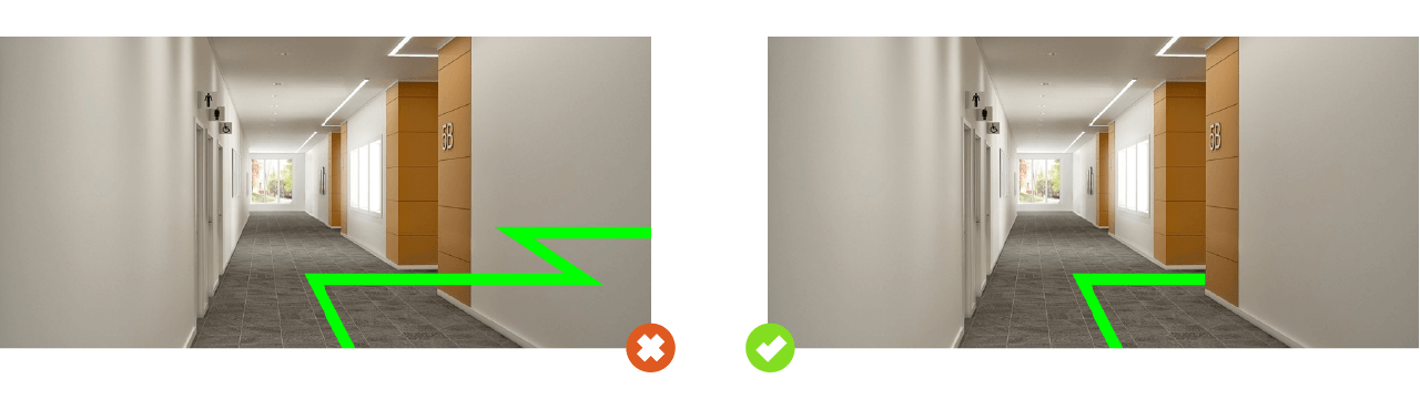Drawing content on the screen is easy. Making it blend seamlessly with the real world is much harder. For indoor navigation, a drawn line on the screen is more helpful if it becomes occluded (obstructed) by a wall or door when it curves around a corner. Without occlusion, users can become confused about where the on-screen directions are taking them.