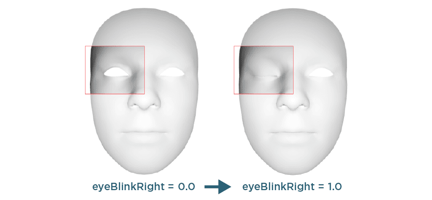 ARKit processes data to result in tracking data, face mesh, and blend shapes. Tracking data gives developers a better sense of how to display content as the subject moves their face. Face mesh is the geometry of the face. Blend shapes are set of the parameters of a detected face in terms of the movements of specific facial features. Each parameter has the corresponding value, which is a floating point number indicating the current position of that feature relative to its neutral configuration, ranging from 0.0 (neutral) to 1.0 (maximum movement).
