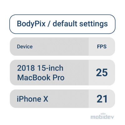 Choosing a model must be based on objective parameters, considering the pros and cons of different approaches. Pay attention to ready-to-use solutions on Bodypix, as they are sensitive to browser selection. FPS can range from 40 in Google Chrome and 15 in Mozilla on the same device under identical conditions.