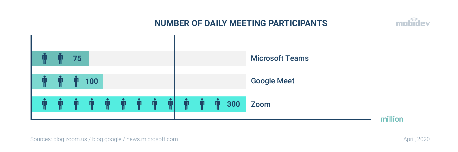 Let’s try to dig deeper to understand the reasons for the growing demand for computer vision solutions, including real-time video background replacement and blurring. The statistics show the increased level of video meetings of all types: one-to-many, one-to-one, many-to-many.