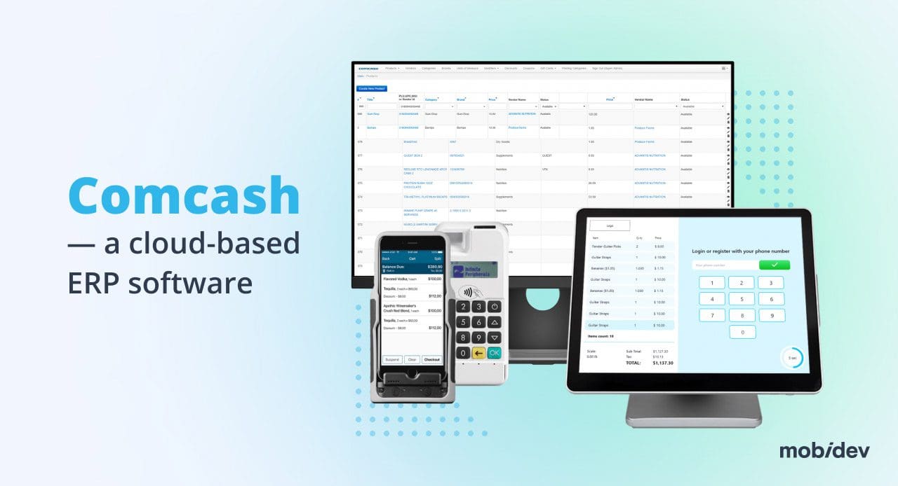 The project we are going to talk about is Comcash, a cloud-based ERP (Enterprise Resource Planning) software with a wide range of features. It includes Point of Sale software and E-commerce software that allows small and medium businesses to sell their products both offline at physical shops and online at e-shops.