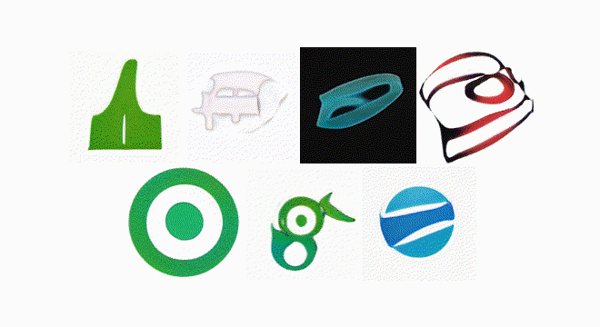 After the GAN image generator has been trained, we have collected a number of logotypes varying in terms of visual quality. Let’s look at the examples of high-quality logos (Fig. 32). As you can see, the network managed to learn not only to reproduce the simple shapes common for logotypes (e.g. circles), but also to generate more complex objects (e.g. rabbit, bird, face, heart, etc.), and, more importantly, to incorporate these shapes into the design of a logotype. Also, the trained network is able to produce appealing-looking textures and color schemes to diversify the final look of the logos.
