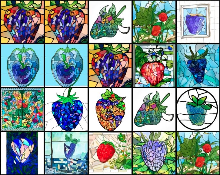 Figure 38. Converting text input “a stained glass window with an image of a blue strawberry” into images using DALL-E (source)