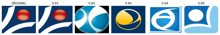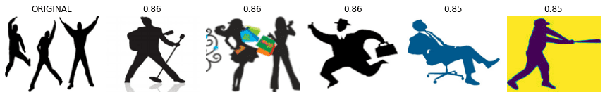 Figure 30. Most similar neighbors search using euclidean distances between image embeddings. Showing 5 most similar neighbors of the original image.