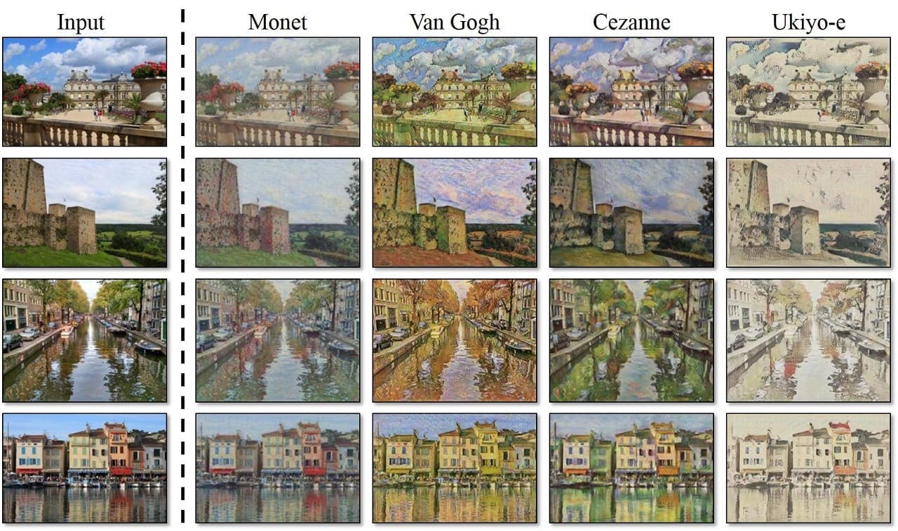 - Domain adaptation — making data from one domain resemble the data from the other domain (e.g. making a normal photo look like an oil painting while retaining the originally depicted content).
