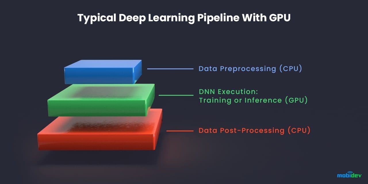 GPU is a powerful tool for speeding up a data pipeline with a deep neural network. The first reason to use GPU is that DNN inference runs up to 10 times faster on GPU compared to a central processing unit (CPU) with the same pricing. The second reason is that taking some of the load off the CPU allows you to do more work at the same instance and reduces network load overall.