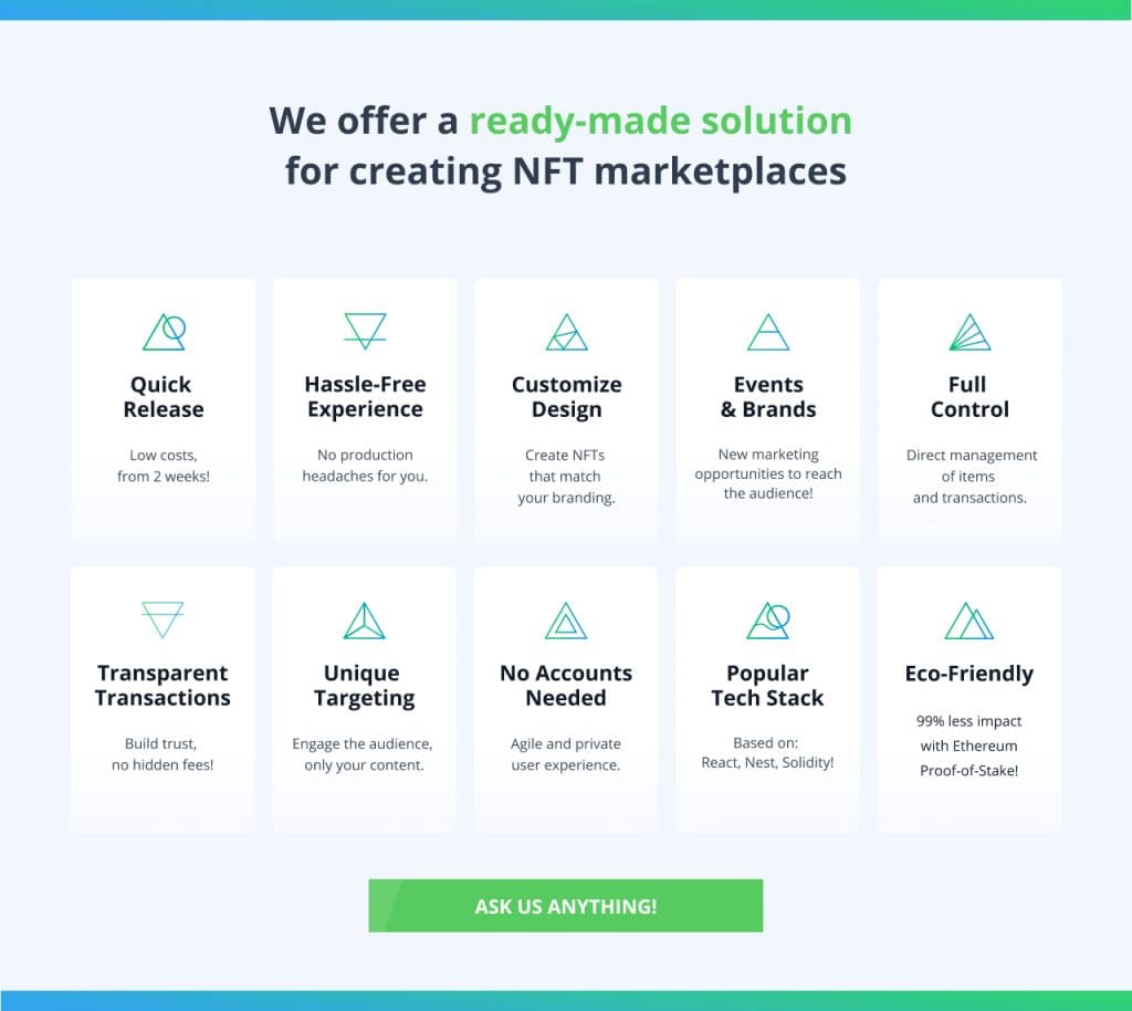 Thus, there is every reason to be interested in exploring white-label NFT marketplace development services. Solutions of this type make it easier to start using blockchain technologies in your business. Instead of walking a long way step by step, you will overcome this path in one leap. Your own white-label NFT marketplace can be a channel through which your customers and like-minded people will receive additional value in the form of unique digital assets.