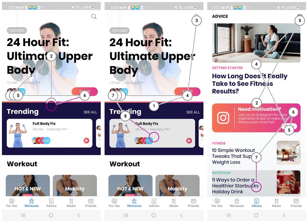 - Swipe through each element in a sequence.
