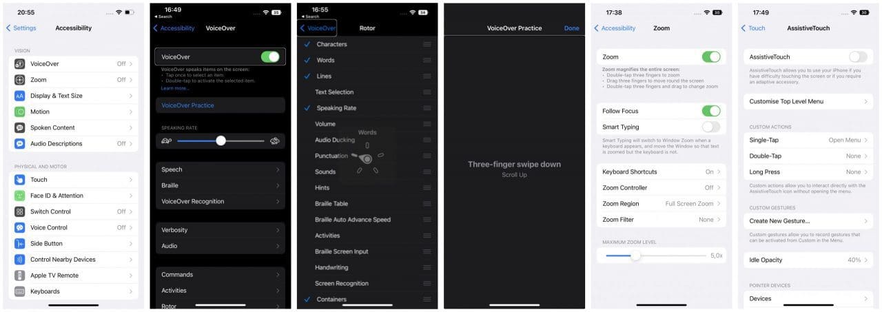VoiceOver users include blind and low-vision users, as well as users with some cognitive or learning difficulties. To enable VoiceOver, navigate to Settings → Accessibility → VoiceOver