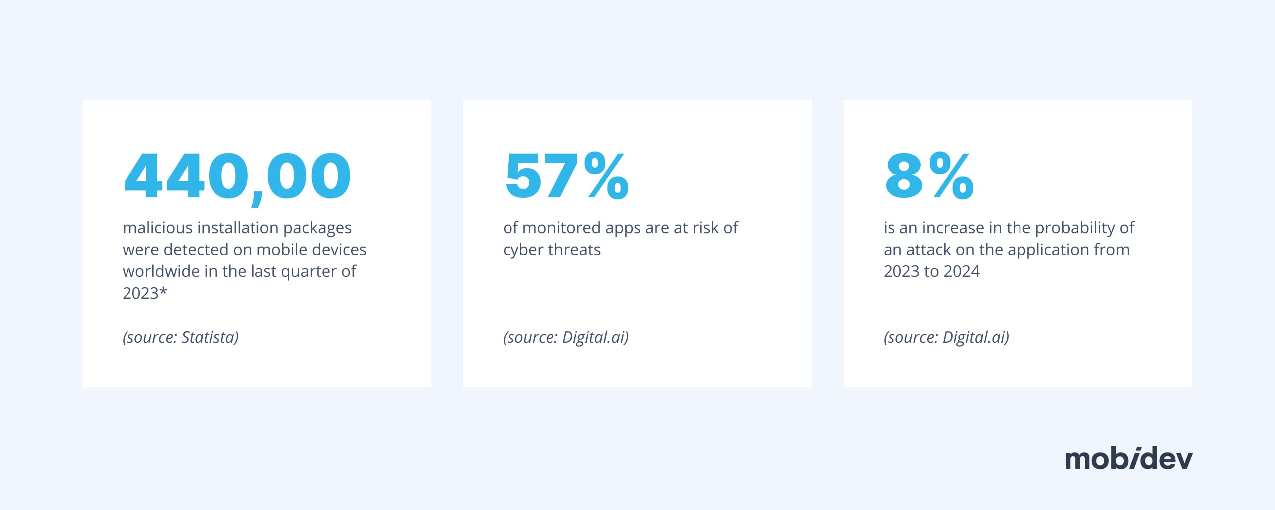 Statista reveals that the prevalence of mobile cyberattacks continues to grow. In 2022, 9% of all global cyberattacks were delivered via mobile devices. This trend continued into the last quarter of 2023, when approximately 440,000 malicious installation packages were detected on mobile devices worldwide.