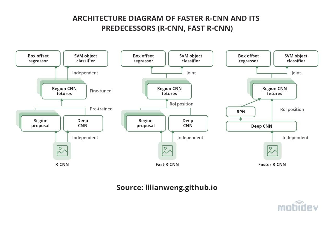 Faster R-CNN (Region-based Convolutional Neural Network) is a 3rd iteration of R-CNN architecture.