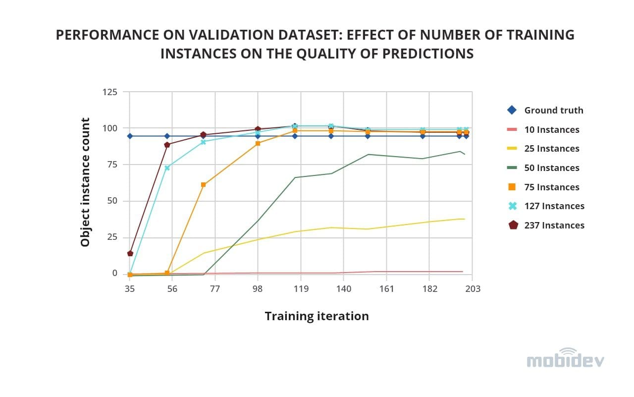 To answer the “how much data is enough” question, it’s absolutely true that no machine learning expert can predict how much data is needed. The only way to find out out is to set a hypothesis and to test it on a real case. This is exactly what we’ve done with the following object detection example.