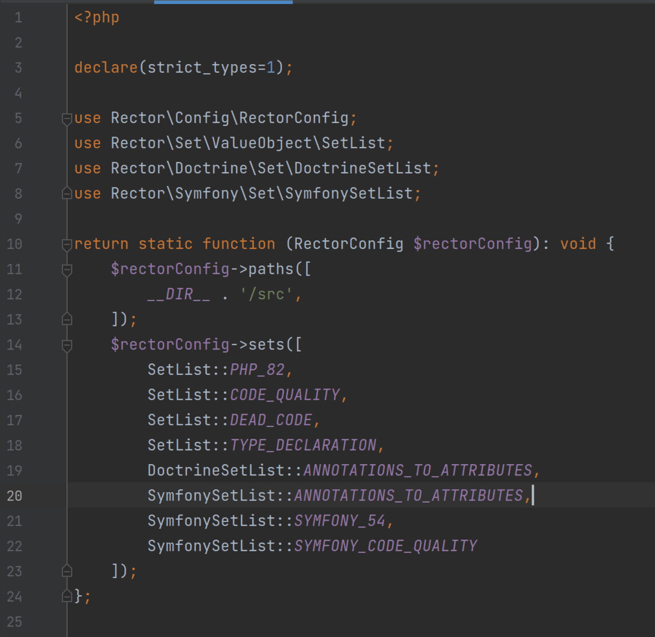 The most important rule is SetList::PHP_82 because we are going to use PHP 8.2