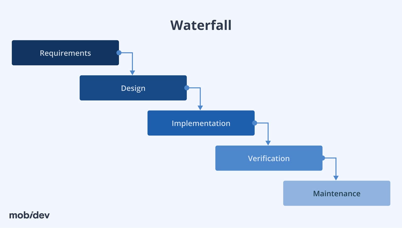 - Linear Progression: The development flows in a single direction — each stage relies on the completion of the previous one.