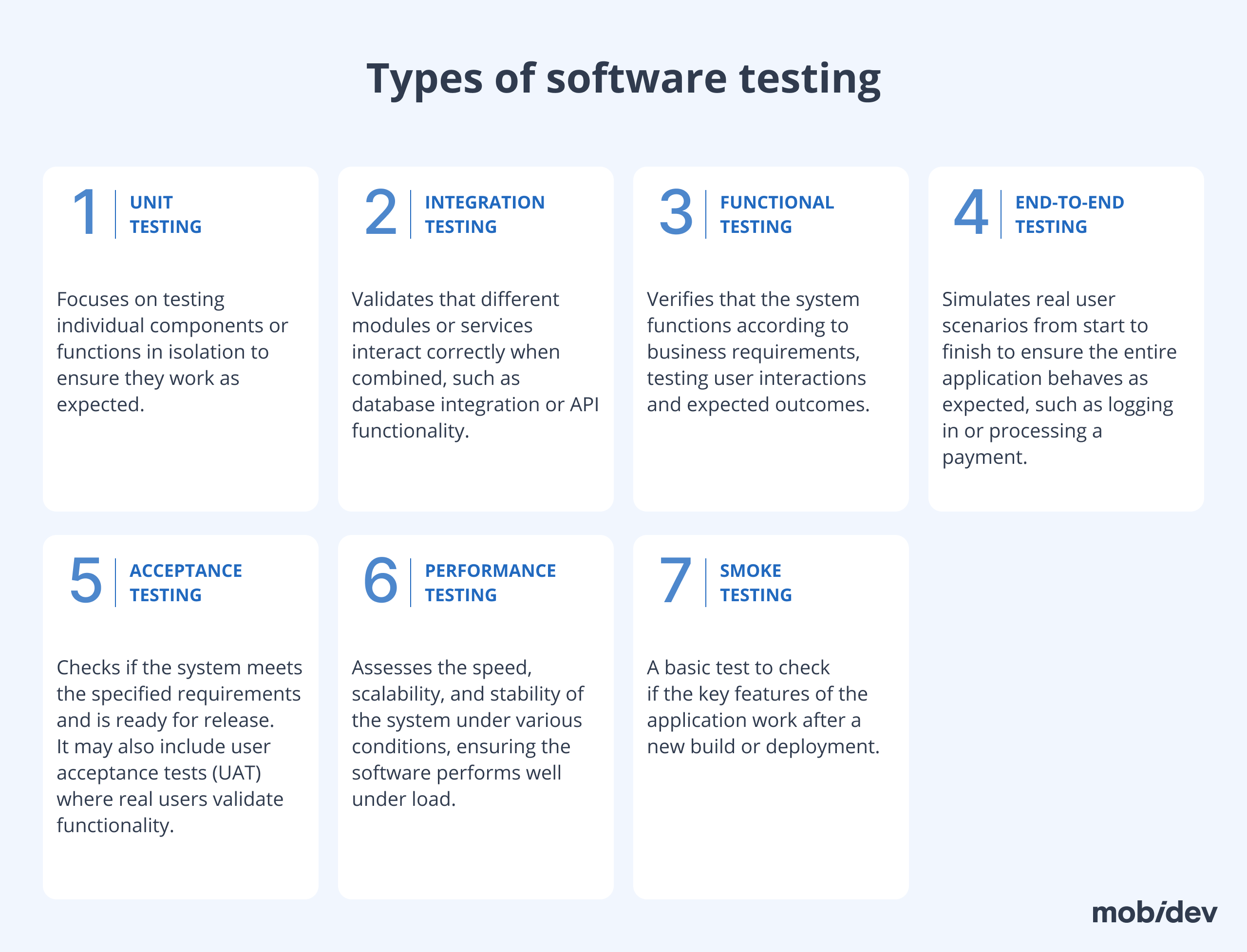 Each type of test requires applying best practices and plays a role in validating different facets of the application, creating a robust framework for ensuring a high-quality, stable, and user-friendly product.