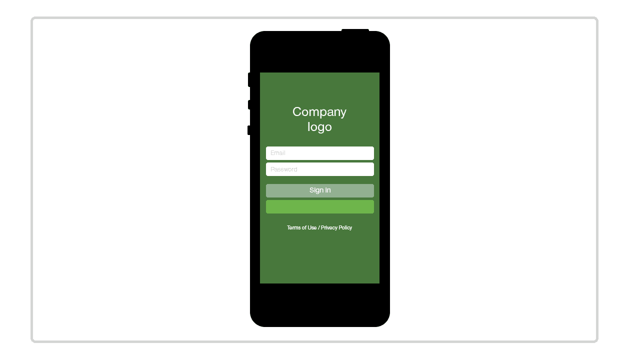 The login must contain the company logo in the top part of the screen, 2 input fields (“email” and “password”), as well as buttons “Sign in”, “Facebook”, “Terms of Use / Privacy Policy”, “Register” and “Forgot password?”. Upon tapping “Sign in”, a request with account data is sent to the server, field validation is performed on the server, the application shows messages about success or failure of this operation depending on the response from the server. Upon tapping “Facebook”, the application asks the user for access to their account. If the user gave permission, enter. If doesn’t, an error message must be shown. Upon tapping “Terms of Use / Privacy Policy”, the application must show a simple screen with the corresponding text. Upon tapping “Register”, the user is led to the registration screen. Upon tapping the button “Forgot password?”, the user receives an alert that asks for an email to send a link for a password reset.