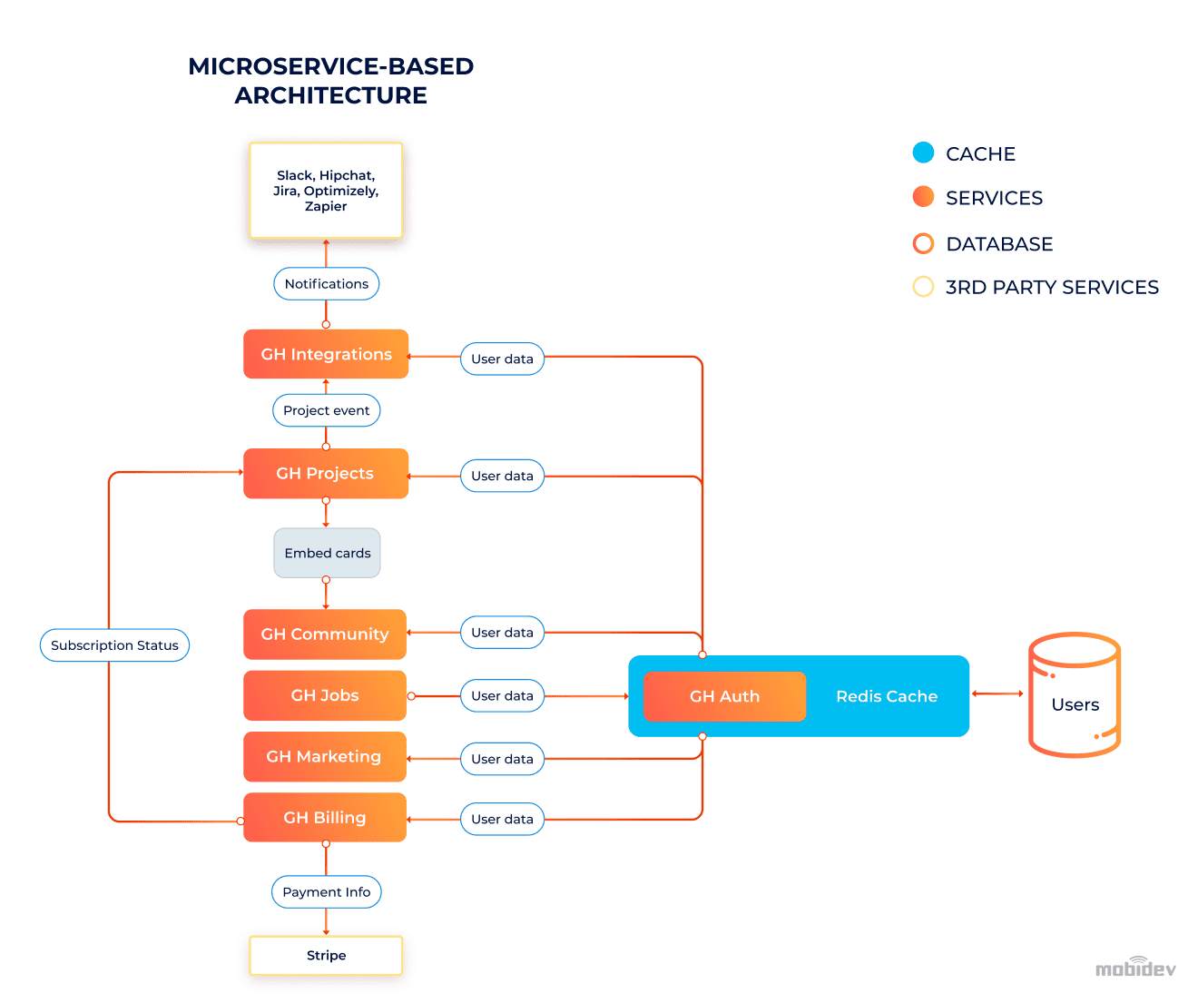 Since the client had no engineers on their side, to implement the described development tasks MobiDev offered a dedicated team once again. But since the project required new infrastructure and breaking monolith code into modular design, DevOps engineers were also involved in the project to migrate the application to Azure cloud.