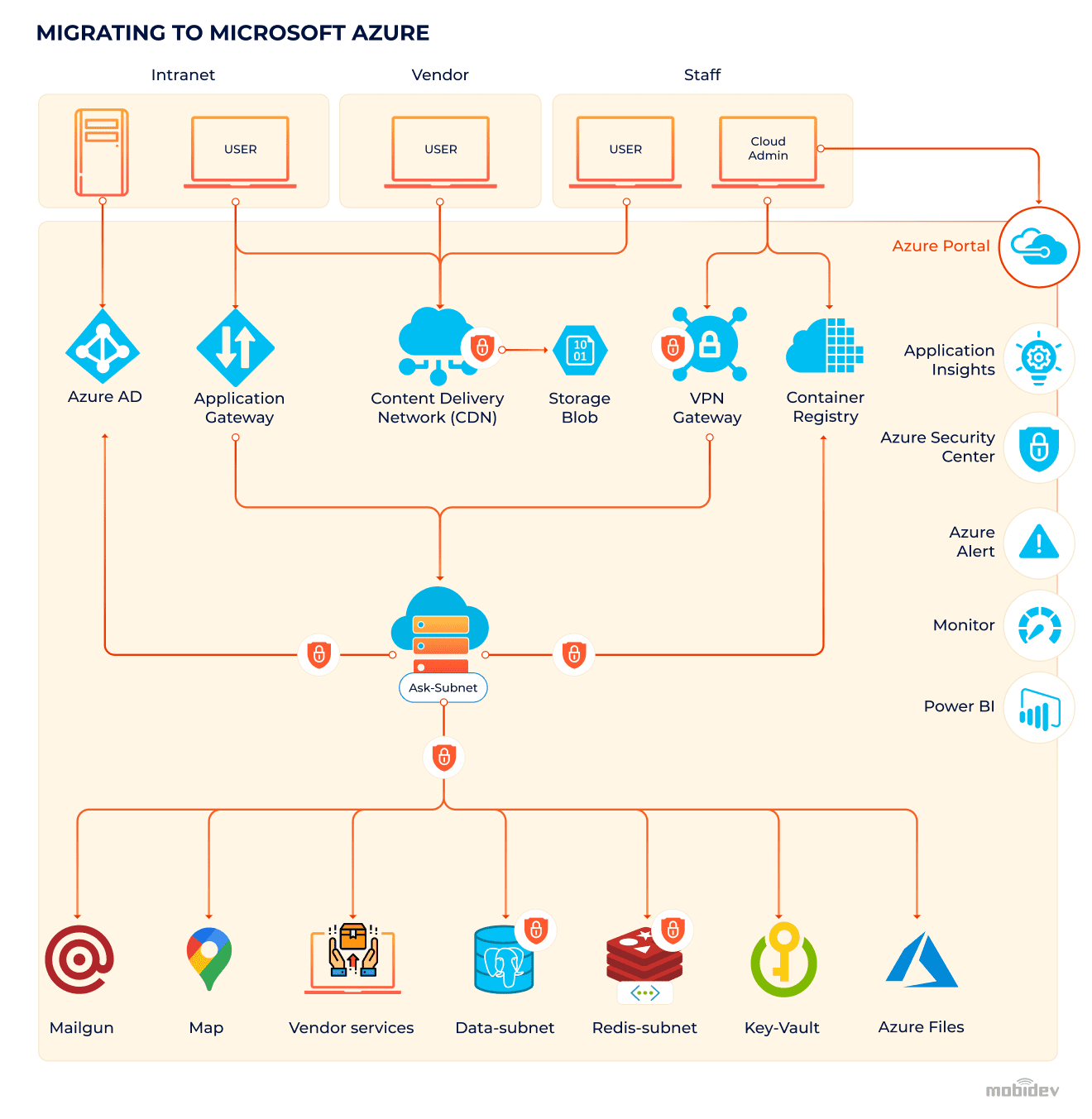 Microsoft Azure was a great candidate for a cloud app modernization solution. At that moment, it had a suitable bunch of tools to set up new infrastructure, taking into account security, scalability, durability, performance, and recoverability.