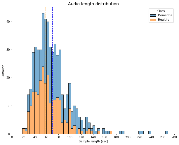 Audio length distribution in DementiaBank dataset
